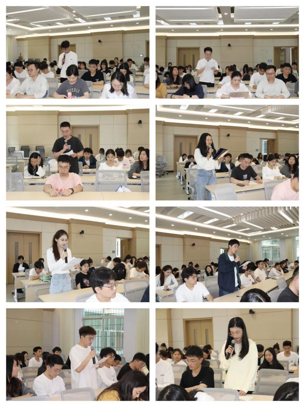 与会师生交流发言。首先是青年教师代表李孟燃,她提到青年应脚踏实地,珍惜在校时光,努力学习,储备知识,培养思维,将个人理想与国家理想相结合,积极参与学科竞赛和学术研究,在实践中磨砺自己,到国家最需要的地方施展才华。