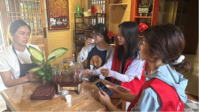 实践队探访了贵州青岩古镇的百年酒坊——非遗酒坊,深入了解糯米酒、刺梨酒酿制这一非遗技艺。传承人介绍,糯米酒距今有三百多年的历史,酿酒原料来自龙里县,酿酒采用传统工艺,每年九月份开始酿酒到一月份,经过两次发酵,历时三个多月酿成。酒坊依托文旅融合模式,通过游客体验、研学项目等方式推广产品,并计划拓展甜糯米酒体验活动,让更多人参与酿酒全过程。尽管目前仅限线下销售,但刺梨酒凭借独特风味和健康价值,已吸引黑龙江、广东等地消费者。
